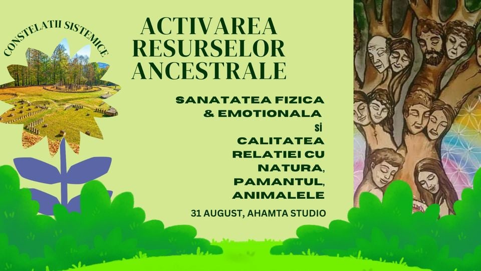 Pe 31 August 2024, descoperă puterea legăturilor ancestrale și explorează adâncimea conexiunii cu rădăcinile tale intr-un atelier unic: ACTIVAREA RESURSELOR ANCESTRALE. Acest eveniment transformator te va ghida într-o călătorie profundă de auto-cunoaștere, unde vei redescoperi și activa resursele ancestrale latente în ființa ta.